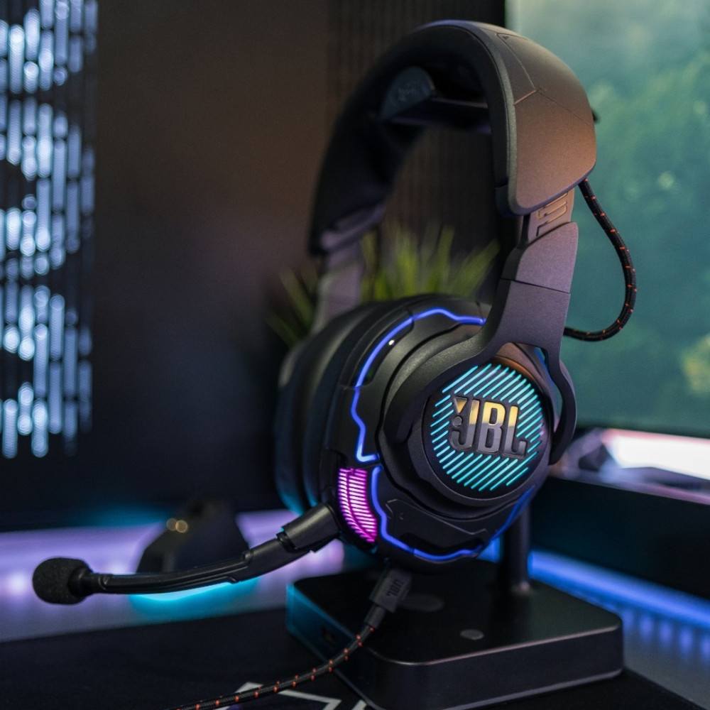 - تم تصميم المعايرة المخصصة لخوارزمية JBL مع مستشعر تتبع الرأس المدمج والميكروفون الجانبي حصريًا لـ JBL Quantum ONE
