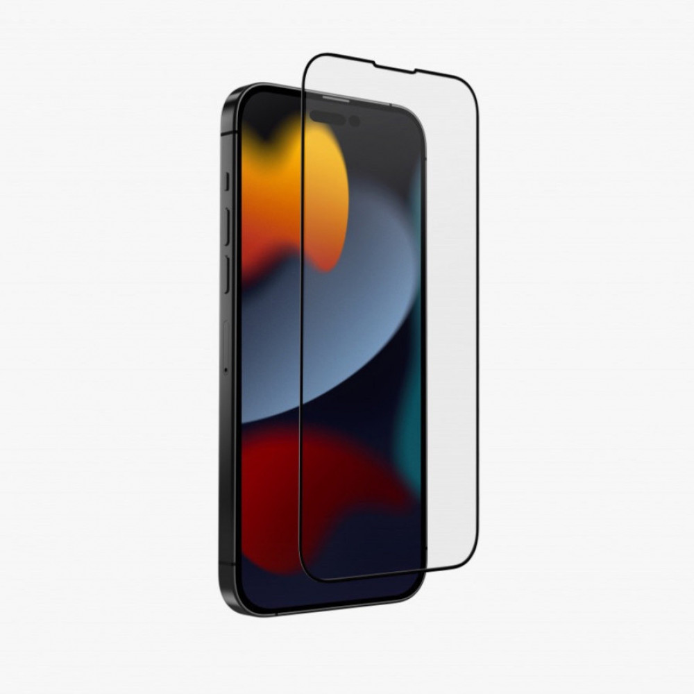 حماية شاشه يونيك اوبتكس ايفون 14 برو ماكس أطراف سوداء ضد البصمه - شفاف