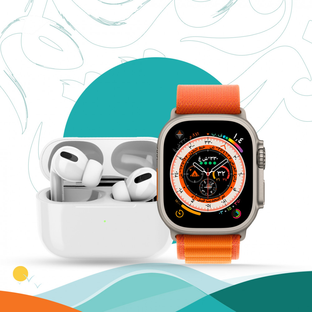 عرض ساعة الترا الجديدة + سماعة ايربودز برو مانعة للضوضاء من Iwin