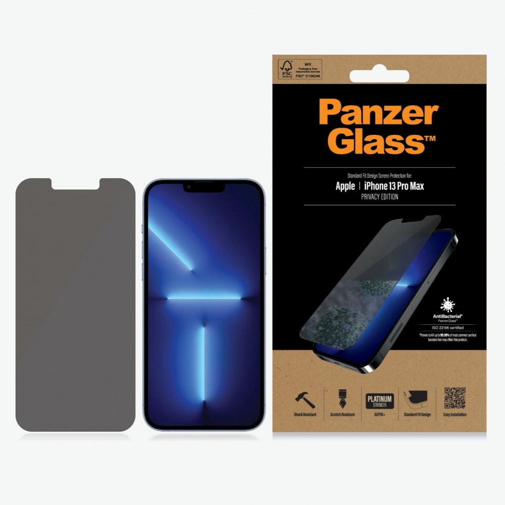 صُنع PanzerGlass ™ Standard Fit لجهاز iPhone 13 Pro Max من الزجاج المسطح المقسّى. يتم تقليل حجم الزجاج Standard Fit ويتميز بغراء سيليكون كامل يمنح حساسية مثالية للمس مع الاستمرار في توفير قوة PanzerGlass ™ الفائقة. يجعل مرشح السرية محتوى الشاشة غير مرئي تقريبًا للجميع باستثناء مستخدم الجهاز.